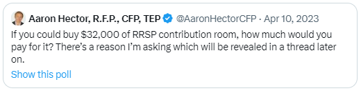Last April, I posed the following question publicly on my social media accounts: “If you could buy $32,000 of RRSP contribution room, how much would you pay for it? Less than $4,000? Or more than $4,000?” Today we are going to explore that, in depth. Can you