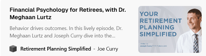Joe Curry continues to get some of the industry's brightest minds on his podcast. Here, Meghaan Lurtz joins him to talk about Financial Psychology for Retirees: