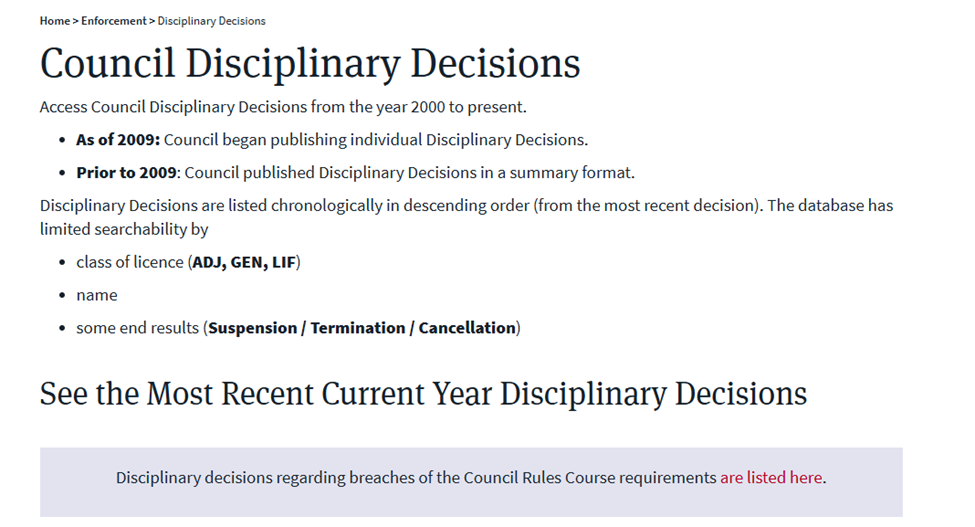 Last week, I was working on a side project, and spent an unhealthy amount of time perusing the Insurance Council of BC’s Disciplinary Decisions site.